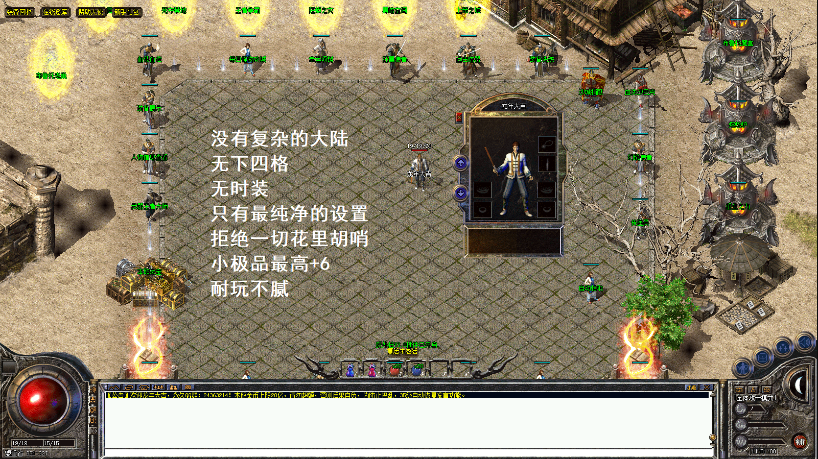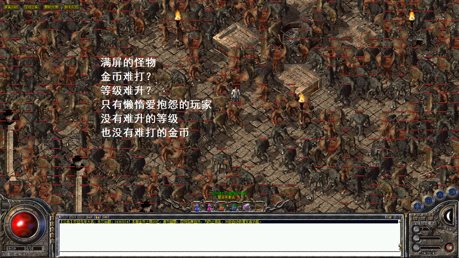 具体攻略及内容介绍登陆器下载在一起文档 本服为复古版本!没有复杂大陆!爆率低!不是三天的激情服!没耐心的玩家不要进来!